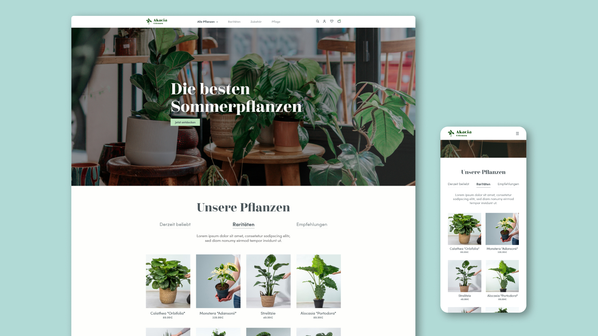 Ein fiktiver Pflanzenladen aus Ottensen, spezialisiert auf botanische Raritäten und möchte nun einen Online-Shop aufbauen.